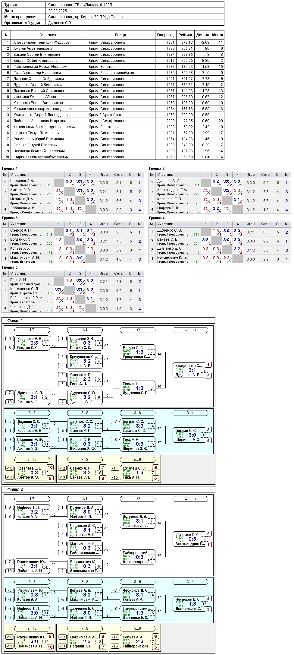 1 место — Александров Г.Ф. (Симферополь)