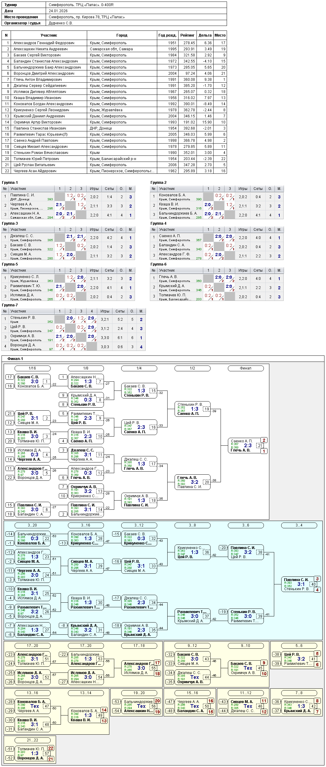 Победители сегодняшнего (24.01.2026) турнира 0-400R